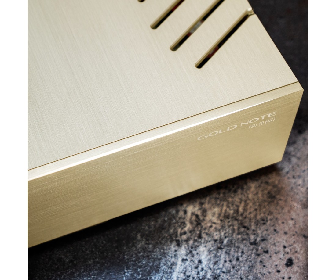 Gold Note PSU-10 EVO è stata sviluppata con i migliori componenti per applicazioni audio di alta qualità, specificatamente selezionati per incrementare le prestazioni di tutti i modelli di DS-10 (DS-10/DS-10 PLUS, DS-10 EVO/DS-10 EVO LINE).