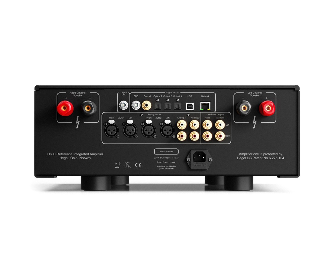 L'amplificatore vanta un'ampia gamma di connessioni analogiche e digitali per ospitare varie sorgenti audio. Sono presenti due coppie di ingressi XLR True Balanced e due coppie di ingressi RCA. Sul fronte digitale, è dotato di una porta di rete LAN, un ingresso USB 32/384 (che supporta DSD256/DoP), tre ingressi ottici, un ingresso coassiale e un ingresso BNC da 75 ohm reali. Per le uscite analogiche, offre una coppia di uscite RCA a livello fisso e una coppia di uscite RCA a livello variabile. Inoltre, fornisce un'uscita digitale BNC reale da 75 ohm a livello fisso. L'H600 è un amplificatore estremamente capace e dal suono eccezionale. È altamente versatile e offre un suono di fascia alta e facilità d'uso, il tutto in un alloggiamento minimalista e di alta qualità che si adatta a qualsiasi stile di interno. L'H600 è un hub per la tua musica digitale, una casa per tutte le tue sorgenti connesse, con un suono adatto alle dimore. L'H600 è una centrale elettrica.