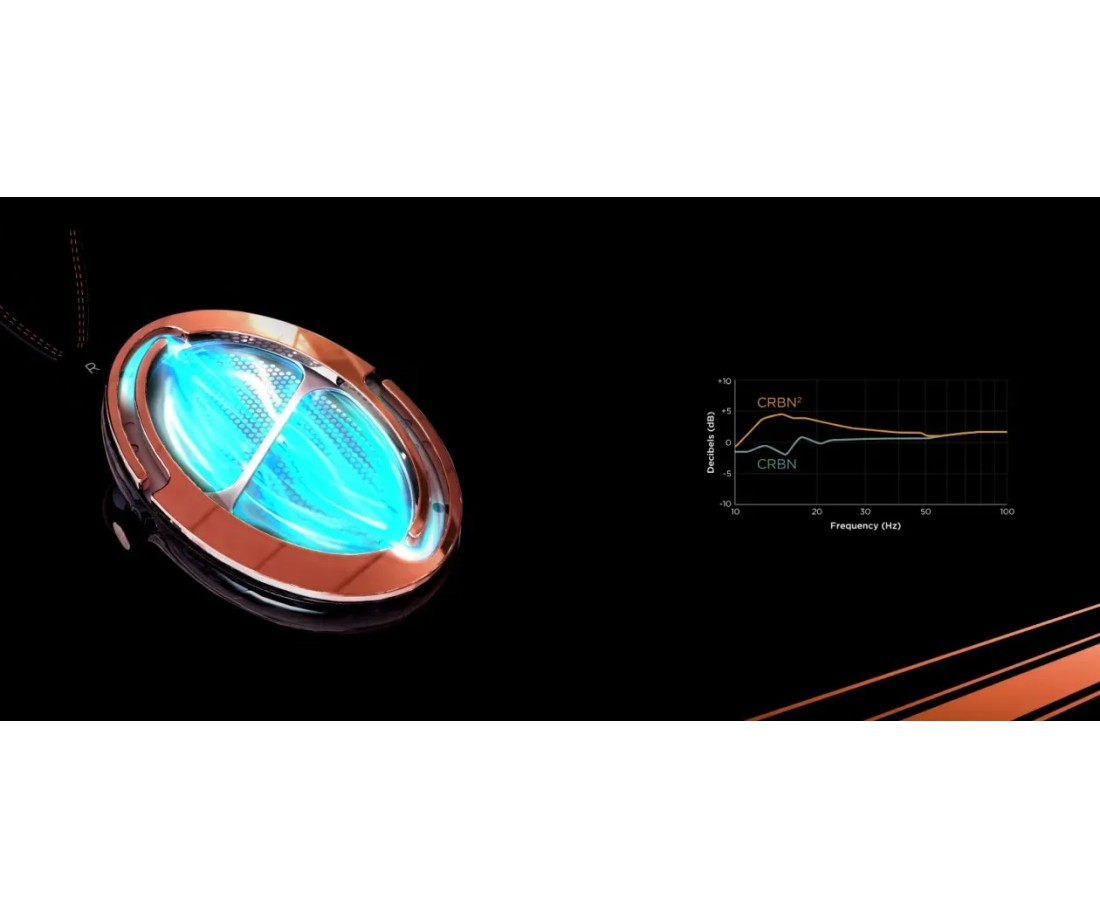 Audeze CRBN2 è la cuffia più avanzata mai prodotta da Audeze: driver elettrostatico a nanotubi di carbonio di 2ª generazione da 120×90 mm, tecnologia proprietaria SLAM™ per il basso più fisico e realistico mai ottenuto da una cuffia elettrostatica, imaging spaziale olografico. Costruita a mano in California con magnesio, fibra di carbonio e pelle premium. Richiede amplificatore elettrostatico 580V Pro Bias.