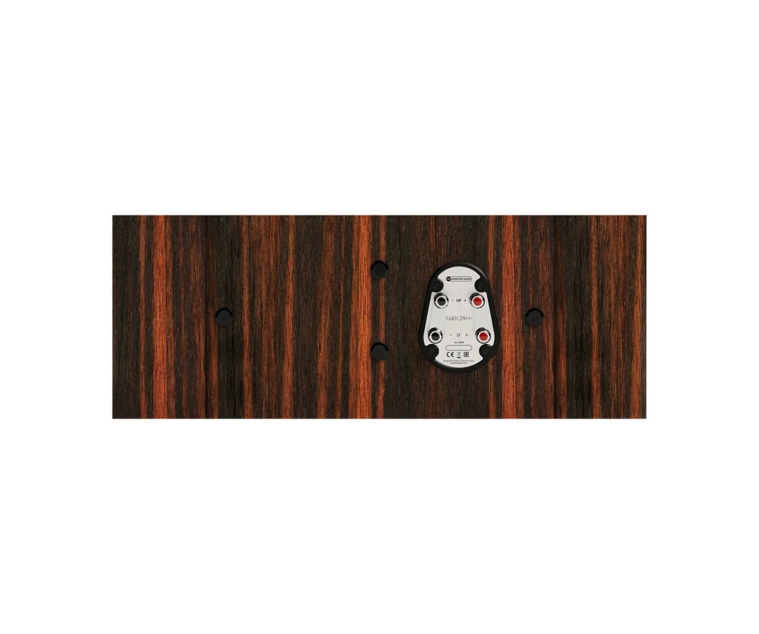 Monitor Audio Gold C250 6G - Canale centrale 3 vie per sistemi home cinema Gold Series 6G. Tweeter MPD III, midrange HDT C-CAM 3" in contenitore acciaio, 2× woofer HDT C-CAM 6". 87,5 dB, 54 Hz–60 kHz, carico sigillato, 4 Ohm. Finiture: Macassar, Nero lucido, Bianco satinato. Venduto come singolo.
