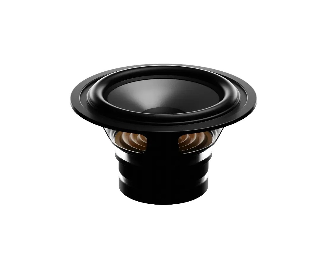 Il woofer da 133 mm (5,25 pollici) è il cuore dinamico delle SE100. Il cono è realizzato in una formula a base di carta su misura: la polpa di cellulosa offre uno smorzamento naturale che i materiali sintetici non riescono a replicare, restituendo voci e strumenti acustici con una consistenza e un calore difficili da ottenere con coni in metallo o Kevlar in questa categoria.