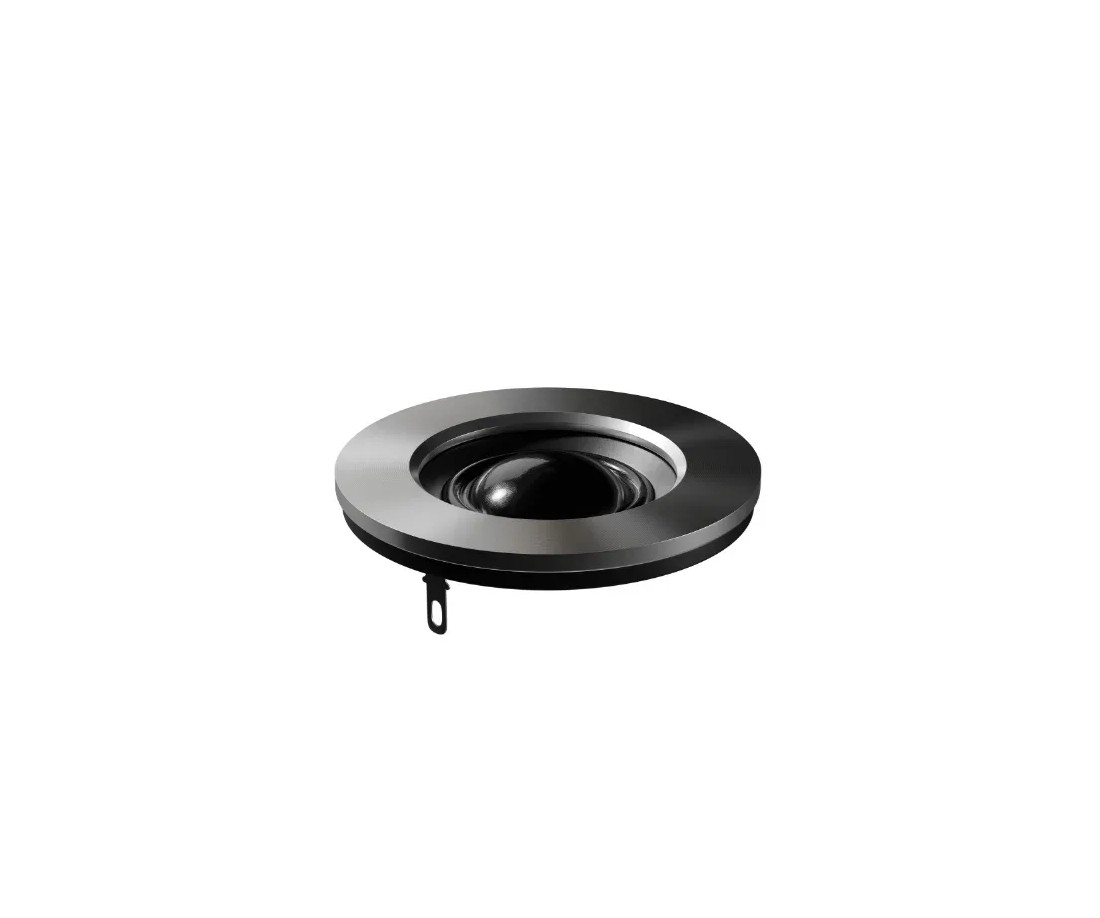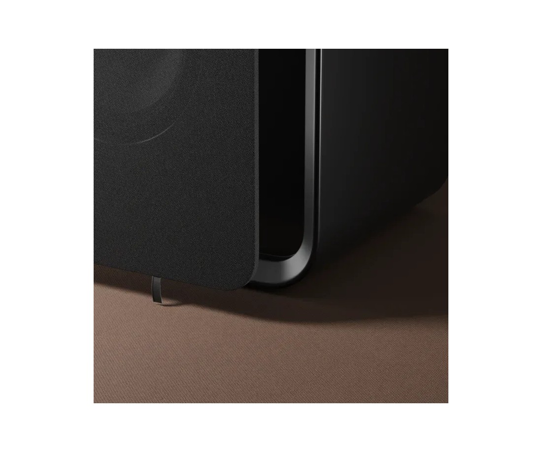 La finitura esterna è un PU Starry Black Matte: un nero profondo e opaco che evita i riflessi di luce, fa emergere il design senza distrarre l'occhio, e si dimostra resistente all'usura quotidiana. La griglia protettiva è magnetica, con attacco invisibile e tessuto a bassa diffrazione personalizzato: nessuna vite, nessun foro visibile.