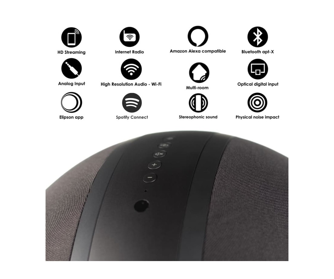 L'altoparlante connesso Elipson W35+ beneficia della nostra pluriennale esperienza nella progettazione e produzione di altoparlanti Hi-Fi. Per questo diffusore connesso Elipson W35+, i nostri ingegneri hanno ripreso l'emblematica forma sferica che si trova anche sui diffusori Elipson Planet L ed Elipson Planet M.
