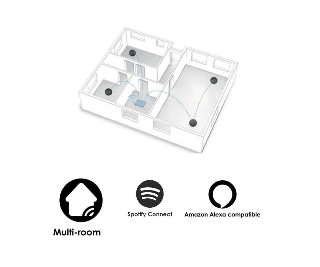 Streaming simultaneo su più dispositivi fino a 10 stanze (a seconda della qualità della rete)