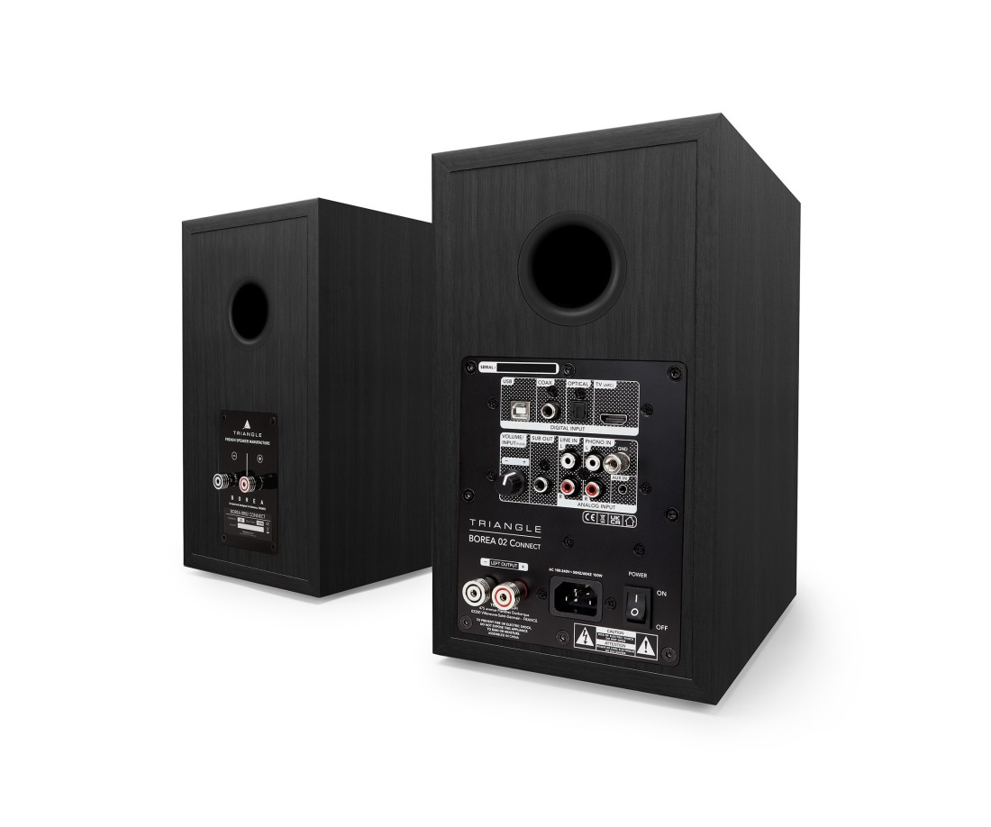 L'amplificatore in Classe D da 2x50 Watt, combinato con il suo driver TRIANGLE da 13 cm in carta di cellulosa naturale e tweeter a cupola in seta da 25 mm, offre una risposta in frequenza lineare perfettamente controllata. Gli altoparlanti attivi BR02 CONNECT vengono forniti con un cavo dedicato da 3 m per collegare i due altoparlanti. Il telecomando RF ha una portata di 15 metri, facilitando il controllo del sistema.