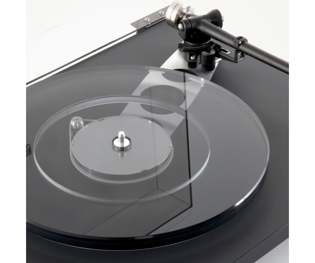 Il giradischi è dotato di un sottopiatto in alluminio lavorato in un unico pezzo, che offre una migliore stabilità della velocità. Il piatto in vetro a doppio strato fumé/trasparente aggiunge massa, migliorando l'effetto volano e la stabilità della velocità.