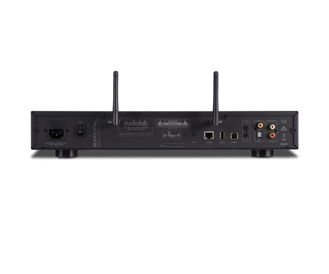 L'inclusione di uno stadio DAC garantisce che il 6000N Play possa essere utilizzato con qualsiasi sistema audio: è sufficiente collegare le uscite analogiche RCA a un normale amplificatore o a una coppia di altoparlanti attivi. In alternativa, porta un feed digitale (ottico o coassiale) direttamente a un DAC esterno o a un amplificatore con ingressi digitali come il 6000A di audiolab. Naturalmente, il 6000A è un partner ideale per il 6000N Play; quando questi due componenti sono accoppiati digitalmente, viene utilizzato un cavo ottico o coassiale per trasmettere il segnale audio mentre un cavo di controllo USB in dotazione consente il controllo del volume 6000A tramite l'app Play-Fi.