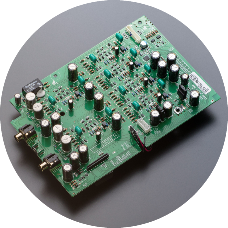 Alimentazione ad alta correnteL'alimentatore di CD 60 utilizza diodi a barriera Schottky ad alta velocità e corrente, condensatori di accumulo di corrente di elevato valore e regolatori di tensione migliorati rispetto ai modelli precedenti di questa classe. I condensatori sovradimensionati nell'alimentatore migliorano la stabilità della corrente e riducono il rumore durante sessioni di ascolto molto impegnative. |