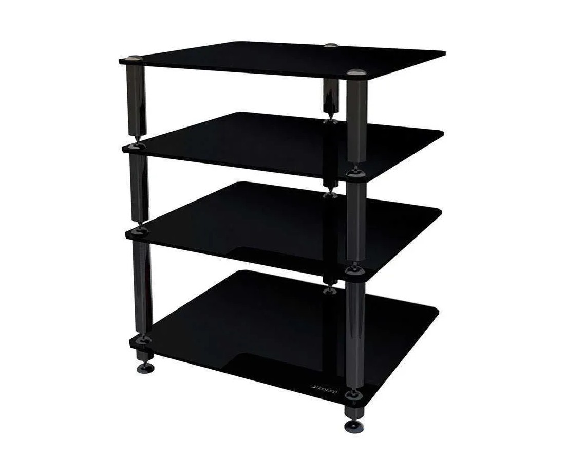 Il Norstone Bergen 2 è il rack Hi-Fi a quattro ripiani in vetro temperato nero più venduto della gamma Norstone — da anni il punto di riferimento per chi vuole un mobile da elettroniche serio, ben costruito e acusticamente curato a un prezzo accessibile. Struttura in acciaio a tre gambe, ripiani singolarmente disaccoppiati con punte coniche, gambe riempibili con sabbia acustica: tutta la filosofia anti-risonanza di Norstone in un mobile che pesa 25 kg e non balla di un millimetro.
