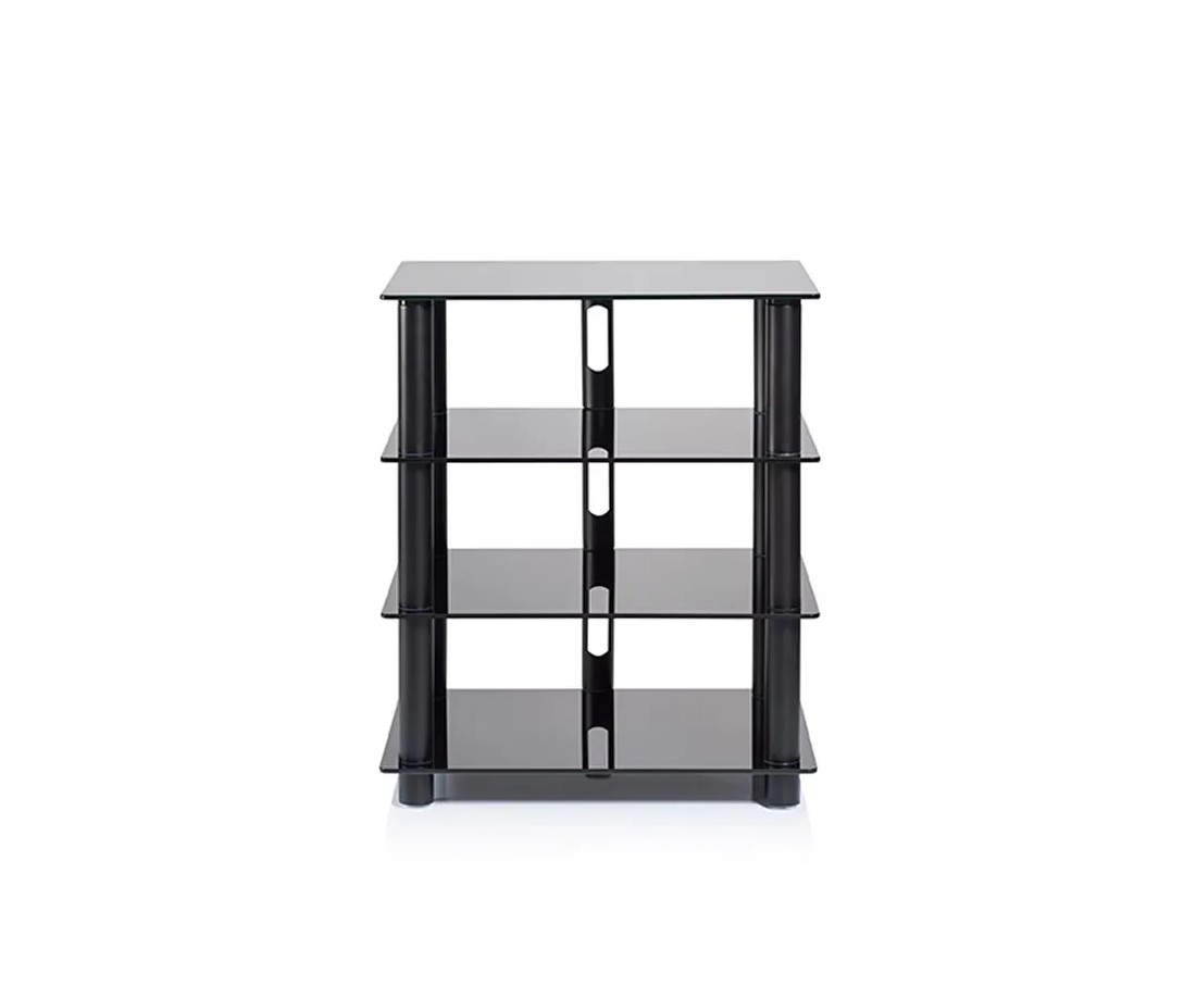 Nella gerarchia dei rack Norstone, l'Epur 4 occupa un posto diverso dall'Esse HiFi o dal Bergen 2. Non è un mobile a profilo sagomato, non ha gambe riempibili con sabbia acustica, non gioca sul numero di finiture disponibili. L'Epur 4 è un rack che punta sull'essenzialità geometrica — quattro colonne verticali, quattro piani orizzontali, linee a 90° — e sulla qualità dei materiali: l'acciaio satinato spazzolato e il vetro trasparente sono due finiture che non invecchiano e che si integrano in qualsiasi ambiente senza sovrastare le elettroniche che ospitano.