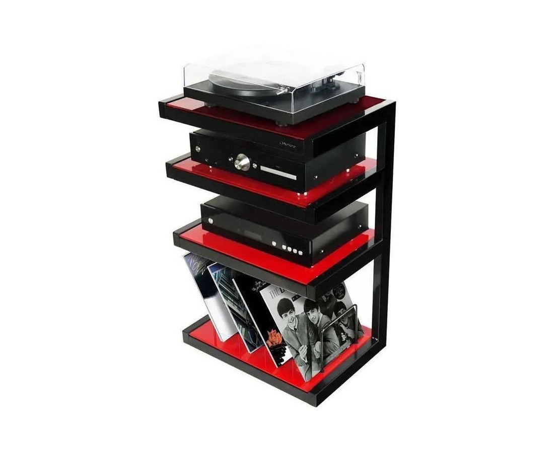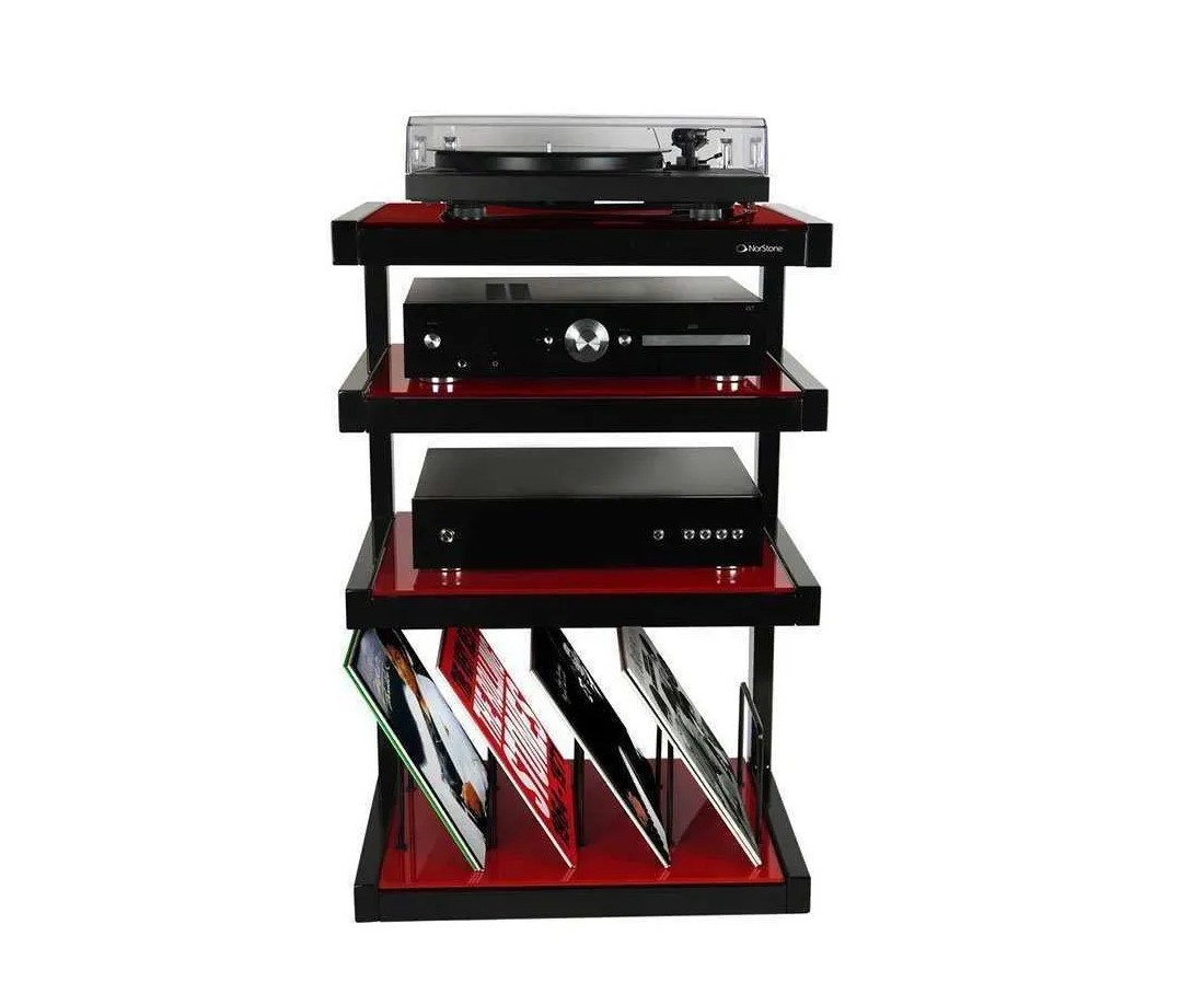L'Esse Vinyl nasce dall'evoluzione della linea Esse HiFi di Norstone — uno dei rack Hi-Fi più apprezzati in Europa per la combinazione di acciaio verniciato e vetro temperato — adattata alle esigenze specifiche degli appassionati di vinile. Le dimensioni sono state ottimizzate per accogliere un giradischi nel ripiano superiore, le elettroniche nei due piani centrali e la collezione LP nella rastrelliera inferiore, creando un sistema di archiviazione e supporto completo che occupa soli 57 cm di larghezza per 86 cm di altezza.