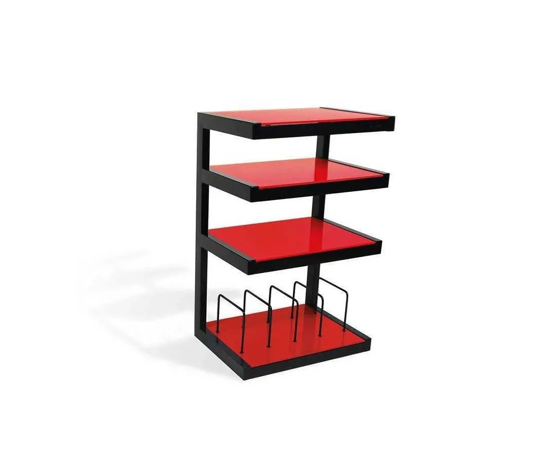 Tutti i modelli della famiglia condividono la struttura in acciaio verniciato a polvere e la filosofia di design aperto che li rende immediatamente riconoscibili. La coerenza stilistica tra i modelli permette di affiancarli o sovrapporli in configurazioni composite, costruendo una postazione audiovisiva visivamente unitaria e funzionalmente razionale.
