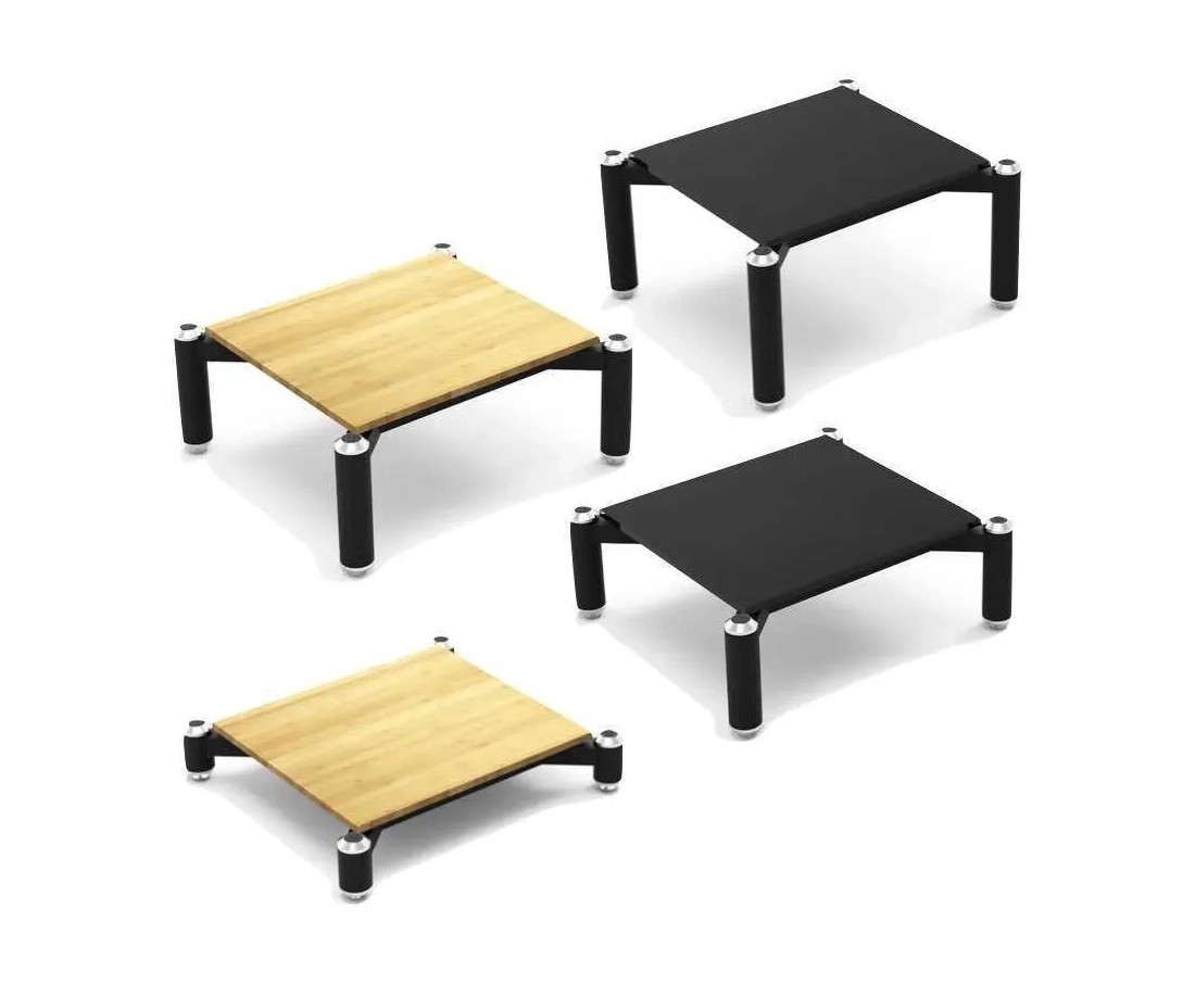 Il risultato pratico è che lo Spider non ha una forma predefinita. Si può costruire una torre alta con quattro moduli sovrapposti, o disporre due basi affiancate a terra per supportare amplificatori finali pesanti su livelli quasi rasenti il pavimento. Si può iniziare con un singolo Spider Base per isolare acusticamente un monoblock, e aggiungere livelli nel tempo man mano che l'impianto cresce. Ogni configurazione è valida, ogni combinazione è stabile.