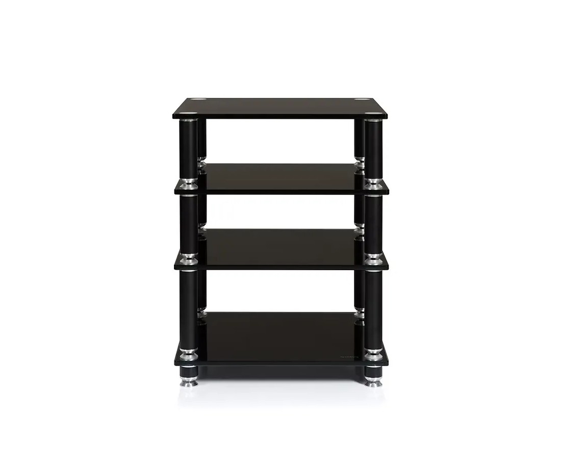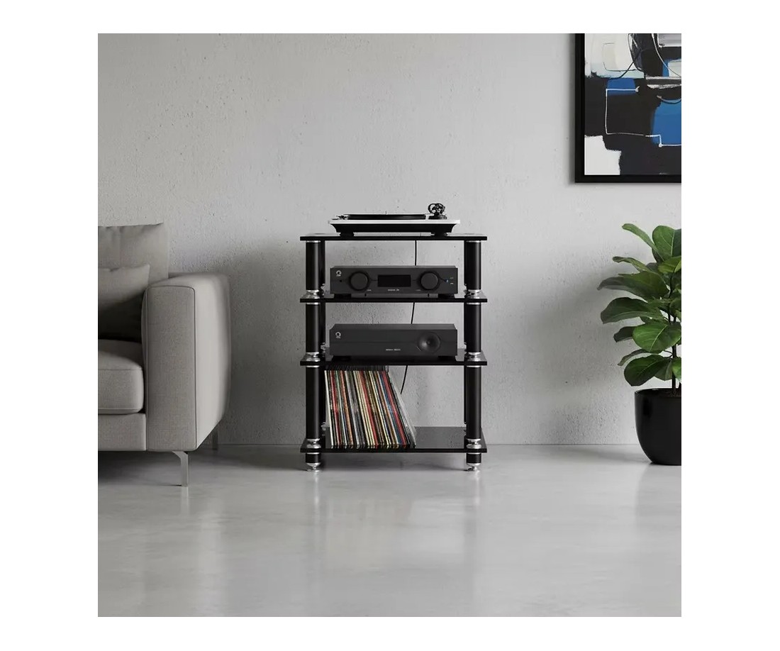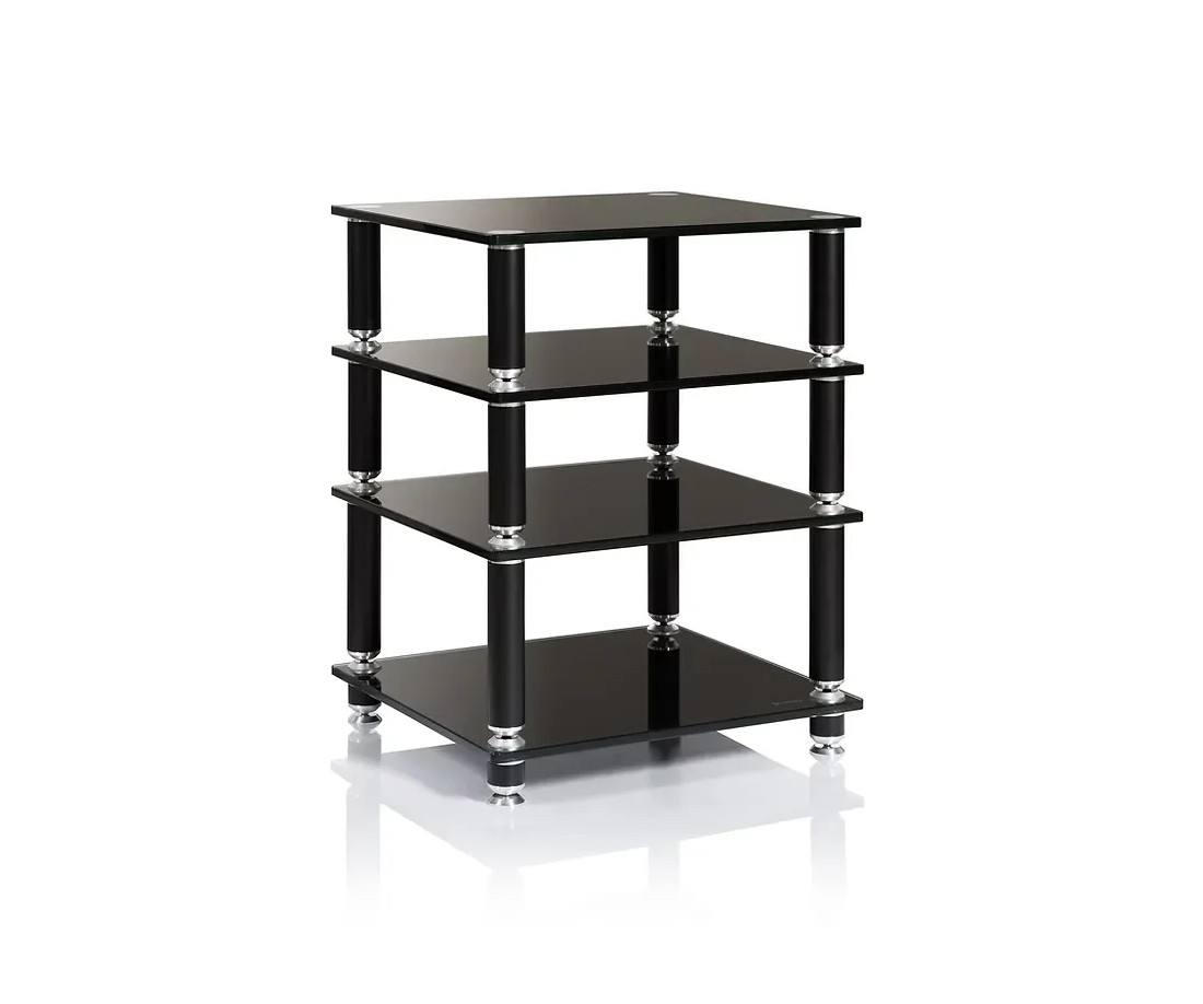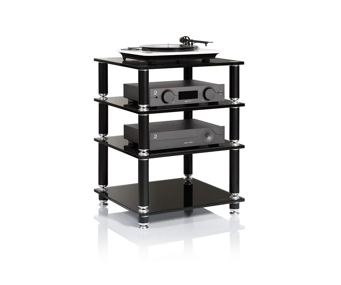 In numeri: con 50 kg di carico massimo per ripiano e quattro livelli, lo Stabbl HiFi può ospitare contemporaneamente quattro elettroniche Hi-Fi di riferimento — inclusi finali di potenza monoblocco, amplificatori a valvole di grandi dimensioni o qualsiasi combinazione di componenti pesanti — senza che la struttura mostri il minimo segno di cedimento o flessione.