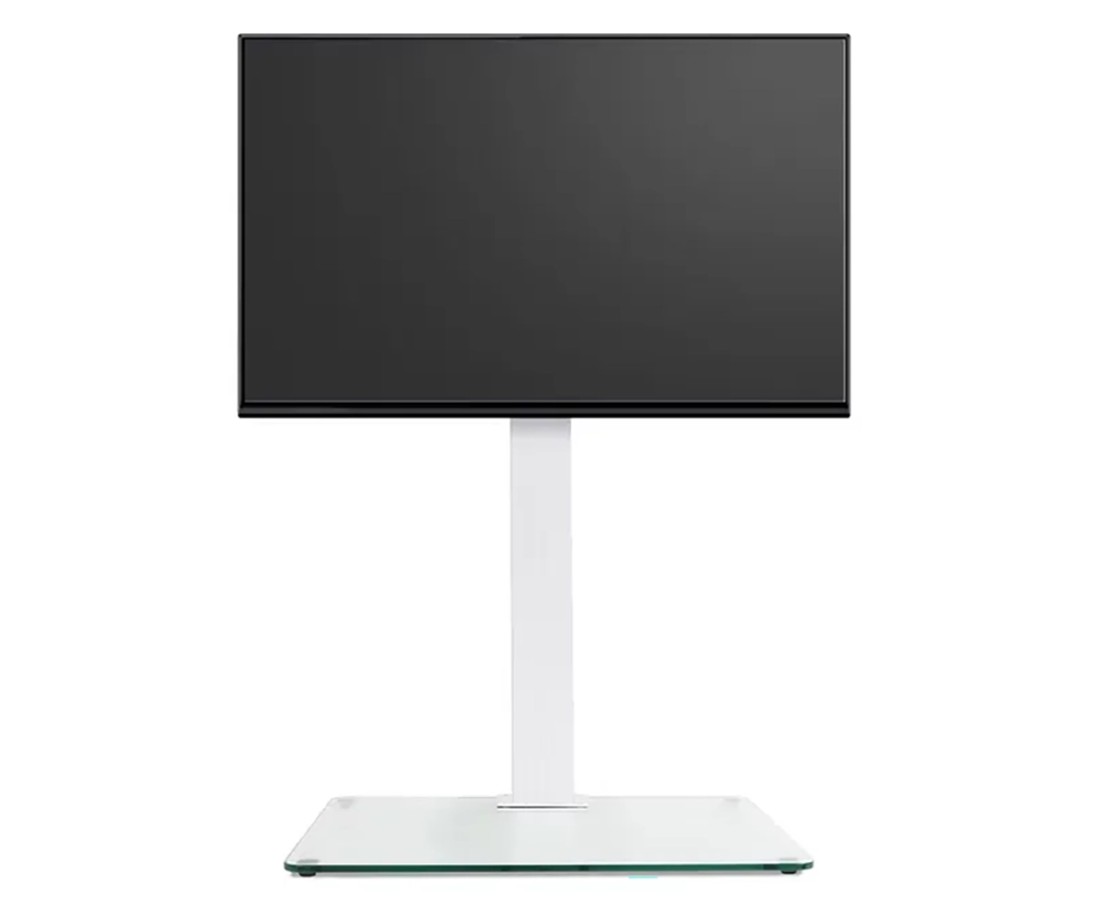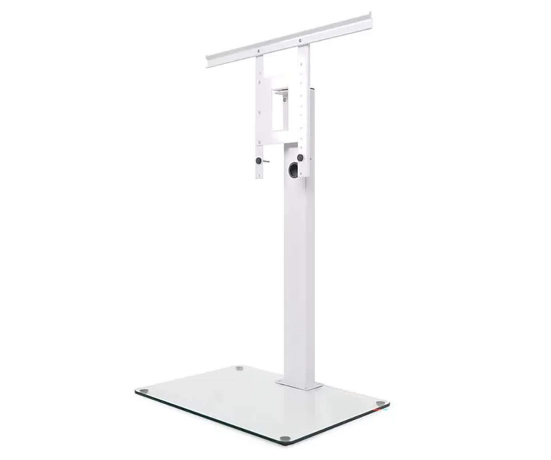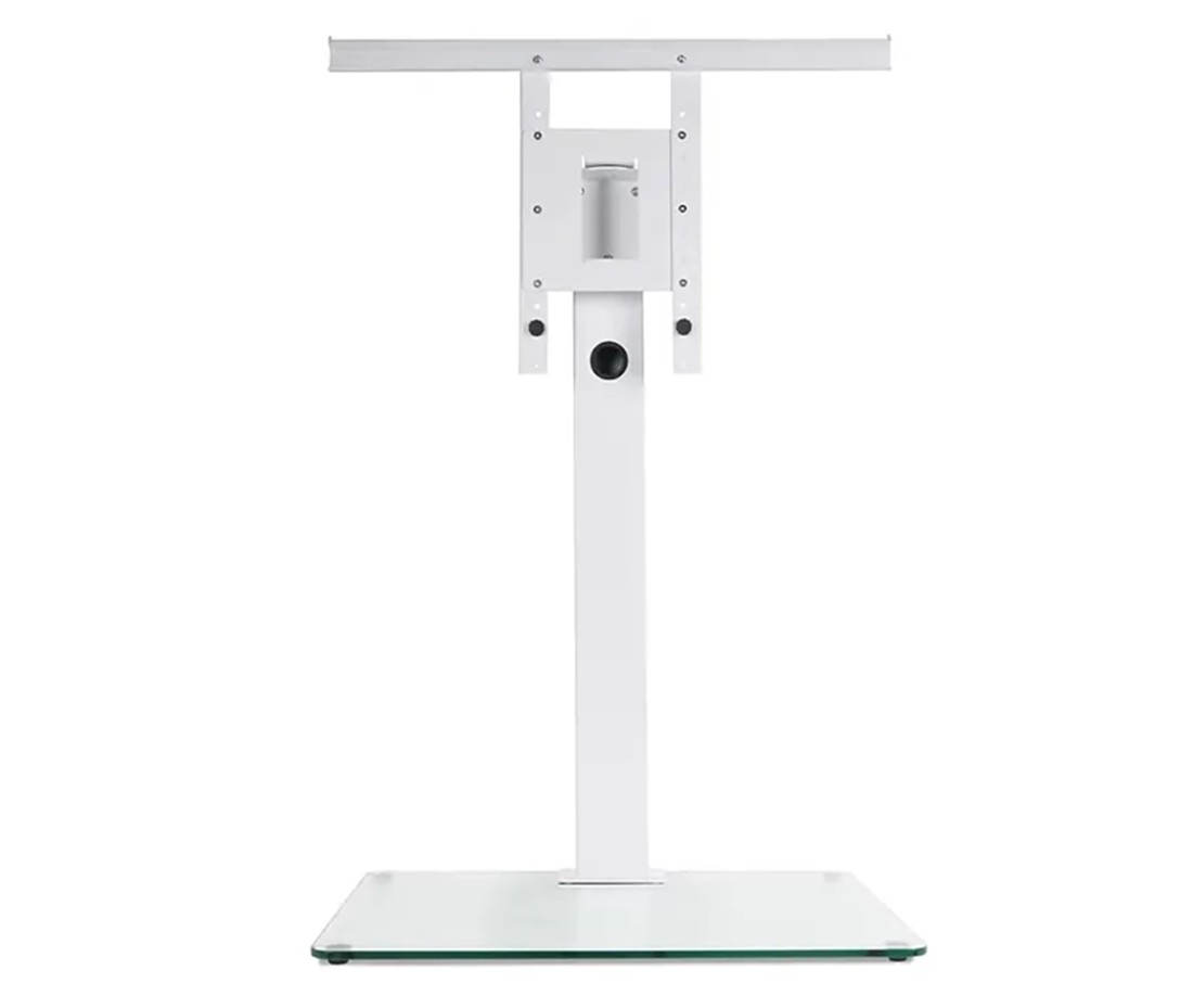 Il Norstone Suspens Plus è il piedistallo TV autoportante che consente di posizionare il televisore in posizione rialzata senza forare il muro. Struttura in metallo bianco lucido, staffa VESA universale in cima, ripiano in vetro fumé 10 mm alla base. Altezza 116 cm, dimensioni 1.160 × 780 × 500 mm. Compatibile con TV fino a 55 pollici. Montaggio senza trapano, tutto incluso in confezione.