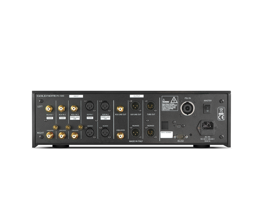 Il design modulare offre agli audiofili più esigenti la possibilità di equipaggiare il PH-1000 con l’alimentazione esterna Gold Note PSU-1250 o PSU-1000, e con gli stadi a valvole TUBE-1012 o TUBE-1006, per raggiungere il più alto livello di realismo musicale in termini di dinamica, dettagli e immagini.
