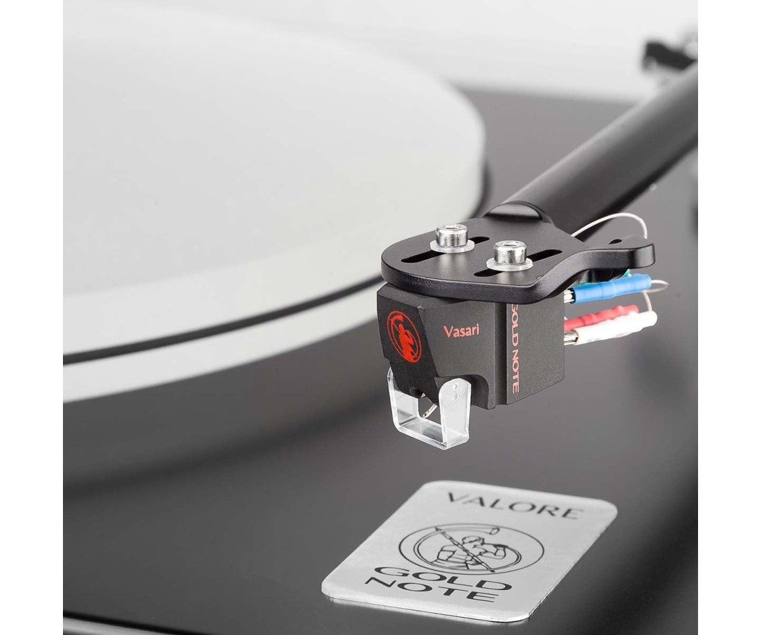La sua struttura ad alto smorzamento, realizzata con materiali di qualità superiore, e il suo cantilever nudo in alluminio ultra rigido rendono il Vasari un superbo tracker per consentire allo stilo diamantato personalizzato in grassetto, sviluppato esclusivamente su specifiche Gold Note, di estrarre tutte le informazioni dal solco del vinile.