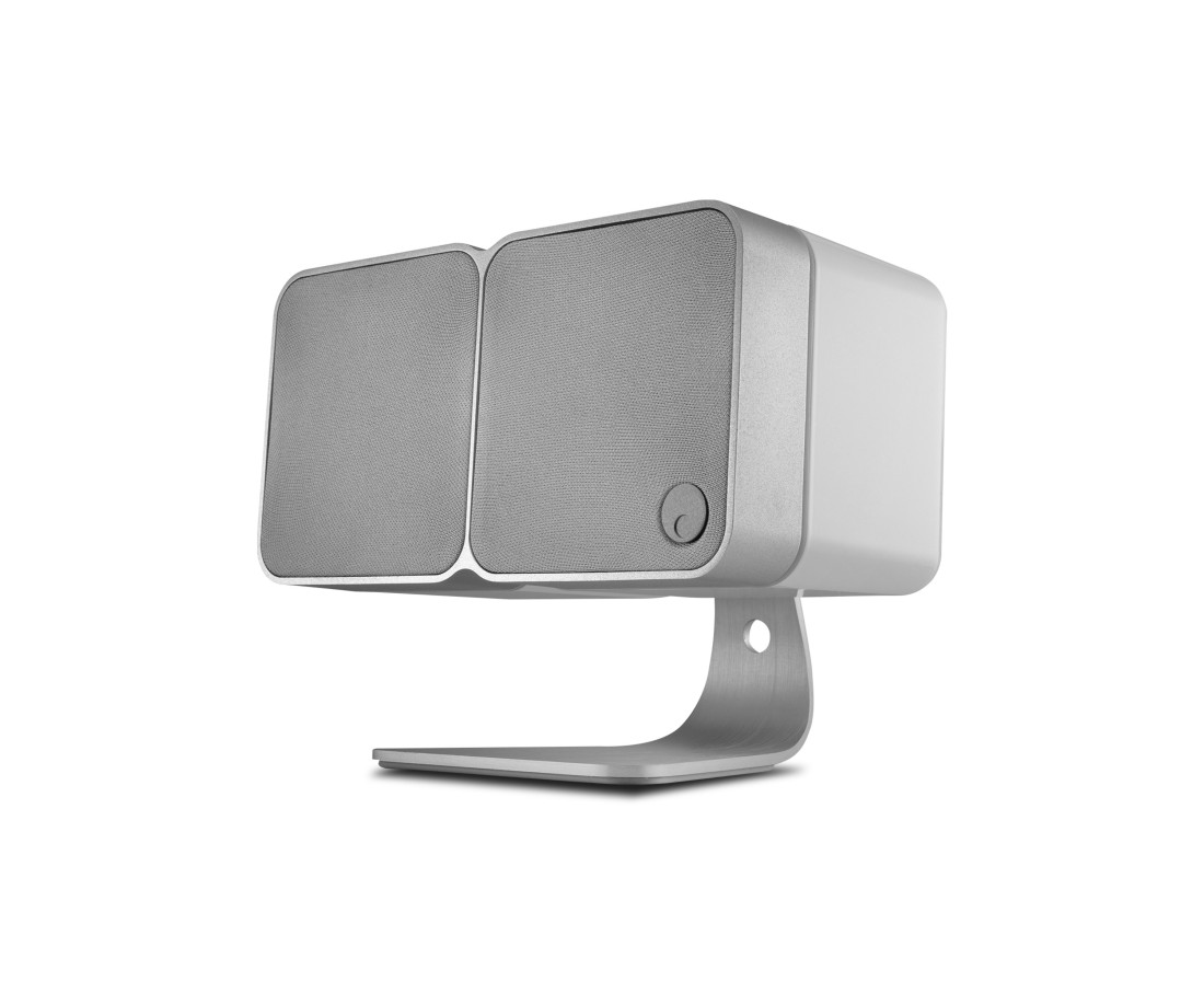 Cambridge Minx 600D è un supporto da tavolo in alluminio spazzolato che aggiunge un ulteriore livello di raffinatezza a Min 12. Sollevandoli dalla superficie, possono aiutare anche le prestazioni audio. Min 22 può essere montato orizzontalmente: ideale se è necessario posizionarlo sotto un televisore come altoparlante centrale per il dialogo.