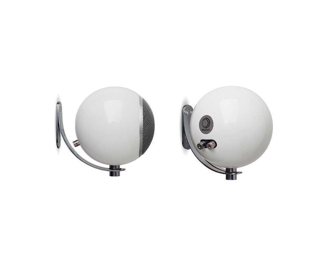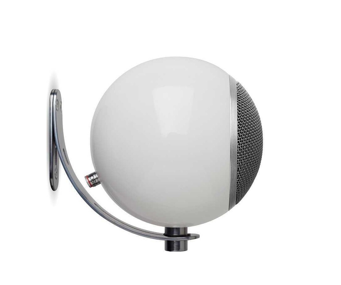 La staffa a parete è un sottile ed elegante arco di cerchio che sublima il Planet M sulla parete della stanza e permette un orientamento laterale dei diffusori.