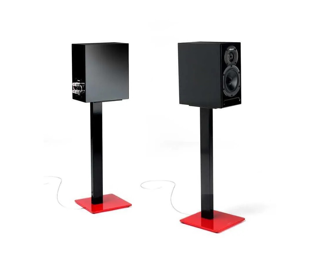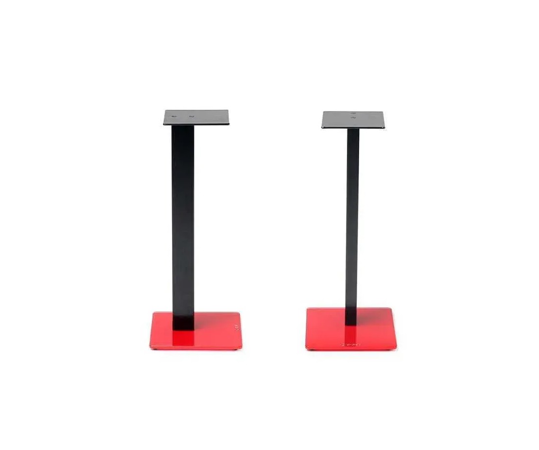 Norstone Esse Stand è lo stand da pavimento della famiglia Esse: design a forma di S in metallo verniciato nero lucido, base in vetro nero o rosso. Altezza 61 cm. Piastra inferiore 230×250 mm, piastra superiore 150×170 mm. Carico certificato 34 kg (consigliato max 20 kg). Passacavi interno. Venduto a coppia. Perfetto abbinamento con i mobili Esse HiFi, Esse Vinyl e Esse AV.