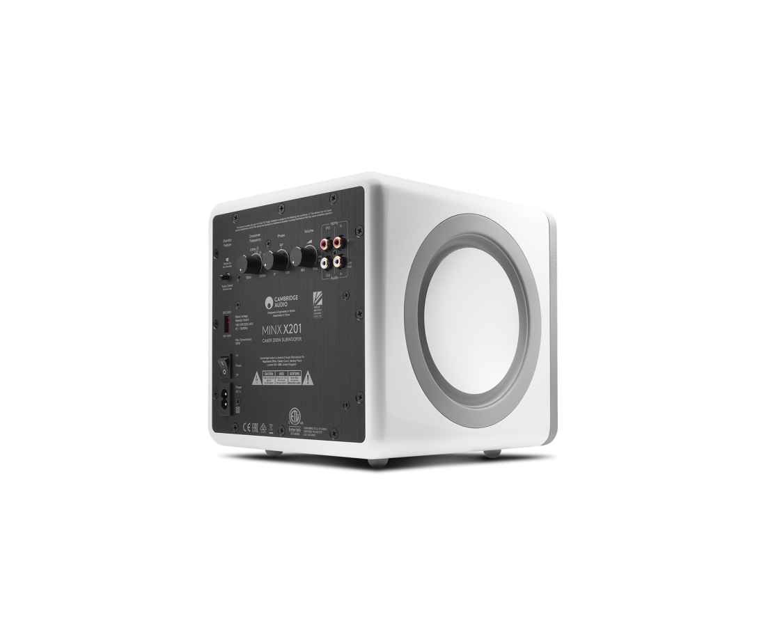 Cambridge Minx X201 è un subwoofer compatto dal suono corposo. Offre una risposta dei bassi migliorata con molti dettagli e controllo, grazie a un singolo driver amplificato e due coni passivi. Sebbene compatto, l'X201 racchiude una potente potenza di 200 W dal suo amplificatore attivo.